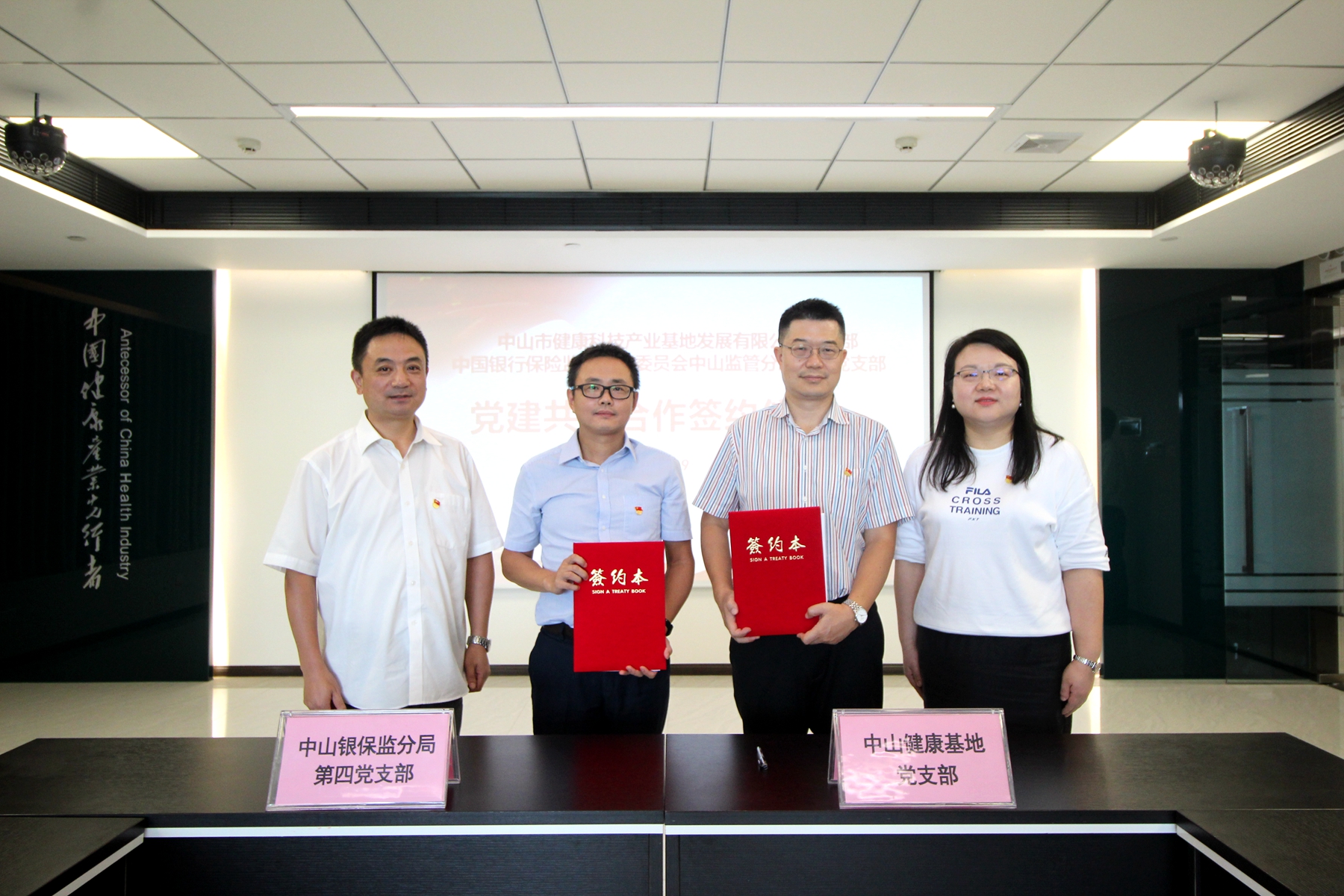 調(diào)研交流之后,中山市健康科技產(chǎn)業(yè)基地發(fā)展有限公司黨支部和中國銀行保險(xiǎn)監(jiān)督管理委員會(huì)中山監(jiān)管分局第四黨支部共同簽訂黨建共建備忘錄。本次簽約是繼2019年4月與中國建設(shè)銀行中山分行黨委共同簽訂黨建共建備忘錄后的又一重要合作成果,標(biāo)志著健康基地高度重視資本對產(chǎn)業(yè)的助推作用,并與中山銀行業(yè)、保險(xiǎn)業(yè)及其監(jiān)管部門保持緊密合作,資源共享,優(yōu)勢互補(bǔ),共同推進(jìn)黨建工作質(zhì)量邁上新臺階,為健康醫(yī)藥產(chǎn)業(yè)發(fā)展保駕護(hù)航。