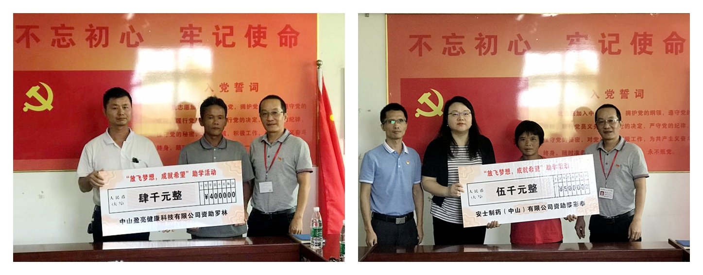 今年5月,健康基地黨委以“放飛希望,成就夢想”為主題,廣泛發(fā)動屬下兩新黨組織和愛心企業(yè)開展愛心助學。健康基地黨委下屬中山百靈生物技術有限公司黨支部響應號召,率先幫扶就讀于華南農(nóng)業(yè)大學的貧困戶子女程梅桂,每年資助1萬元助學金,直至其完成學業(yè)。今年以來,健康基地黨委倡議發(fā)動園區(qū)9家企業(yè)完成第一期捐資共4.1萬元,結對資助團結村貧困學子12名。