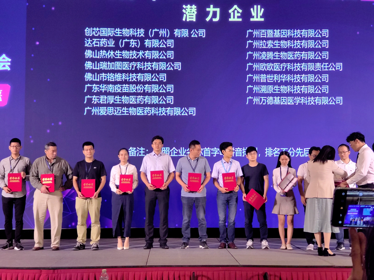 10月16日,第二屆粵港澳大灣區(qū)生物科技創(chuàng)新企業(yè)50強頒獎大會在廣州舉辦,健康基地園區(qū)企業(yè)廣東和博制藥有限公司(簡稱:和博制藥)從眾多報名企業(yè)中脫穎而出,入選50強榜單,是中山市唯一一家獲獎企業(yè)。此外,健康基地園區(qū)企業(yè)廣東君厚生物醫(yī)藥有限公司、中山康天晟合生物技術(shù)有限公司(簡稱:君厚生物、康晟生物)榮獲潛力獎。
