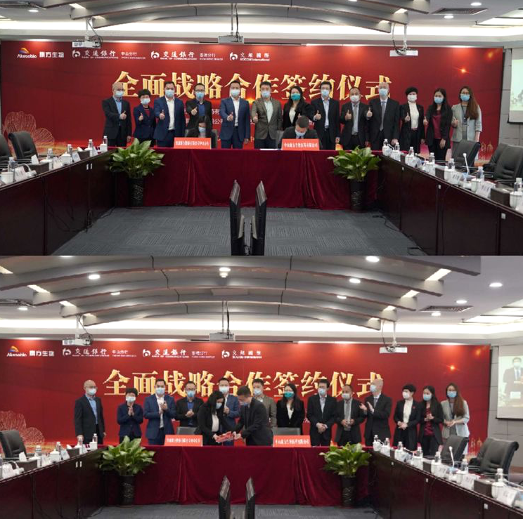 康方生物聯(lián)合創(chuàng)始人、董事、高級(jí)副總裁李百勇、王忠民,聯(lián)合創(chuàng)始人、副總裁張鵬,首席財(cái)務(wù)官席曉捷,交通銀行中山分行黨委書(shū)記、行長(zhǎng)周土勝,黨委委員、副行長(zhǎng)曹娟,交銀國(guó)際副首席執(zhí)行官蘇奮,交銀國(guó)際(亞洲)公司總經(jīng)理李宏麗,交通銀行香港分行一帶一路與大灣區(qū)部總經(jīng)理林永強(qiáng),副總經(jīng)理陳智樂(lè)等分別參加在中山和香港的簽約儀式。