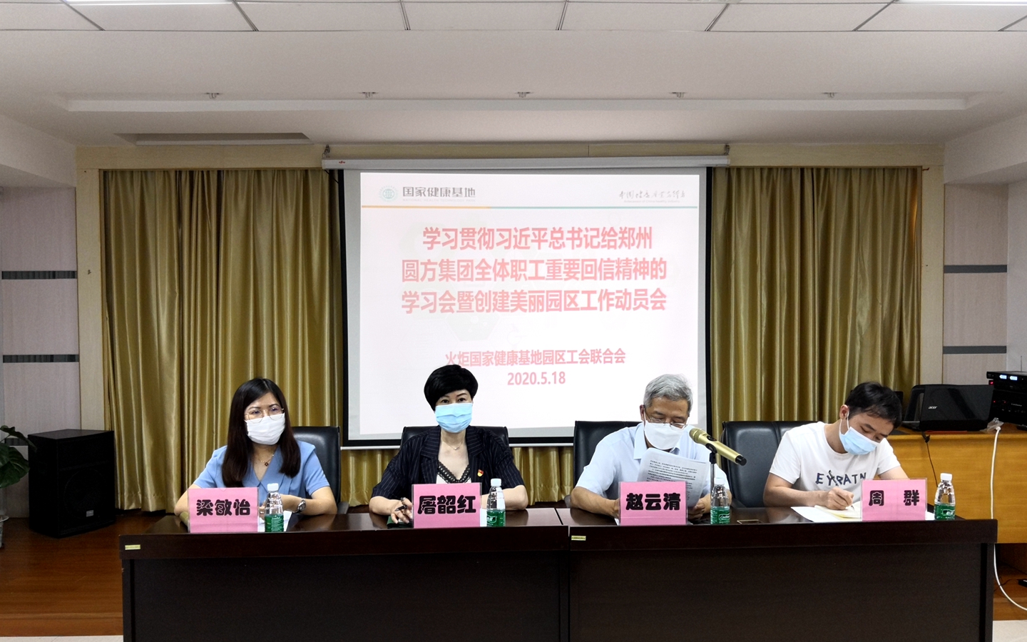 屠韶紅主席介紹了在抗疫期間,工聯(lián)會(huì)聯(lián)合企業(yè)工會(huì)在做好企業(yè)自身疫情防控和經(jīng)濟(jì)發(fā)展的同時(shí),生產(chǎn)和調(diào)集大量抗疫物資、向醫(yī)療機(jī)構(gòu)和社會(huì)捐款捐物,為支援抗疫工作做出了突出貢獻(xiàn)。她提出:工聯(lián)會(huì)從各種渠道為園區(qū)企業(yè)職工籌集口罩等防護(hù)物資,為疫情期間企業(yè)復(fù)工復(fù)產(chǎn)發(fā)揮了重要作用,工聯(lián)會(huì)還協(xié)調(diào)志愿者入廠為職工理發(fā),協(xié)調(diào)愛護(hù)、嘉信、天琪公司、三才、和佳、九州通、中智大藥房生產(chǎn)和調(diào)集大量防護(hù)物資保障中山,組織騰駿藥業(yè)、可可康制藥、金城金素、三才醫(yī)藥、美味鮮等企業(yè),為中山醫(yī)療機(jī)構(gòu)、市民提供藥品、米醋及消毒水等;組織中智藥業(yè)、金城金素、星昊藥業(yè)、明峰醫(yī)療、歐亞包裝、騰駿藥業(yè)、英得爾公司等為醫(yī)療機(jī)構(gòu)捐款捐物合計(jì)2500萬元,充分發(fā)揮了工會(huì)組織在抗疫方面的作用。同時(shí),她提出:健康基地將充分抓住建設(shè)美麗園區(qū)的契機(jī),高標(biāo)準(zhǔn)建設(shè)智慧健康小鎮(zhèn),為廣大職工提供優(yōu)質(zhì)的工作和居住環(huán)境,健康基地近期也將啟動(dòng)垃圾分類環(huán)保知識(shí)競(jìng)賽等系列活動(dòng)。
