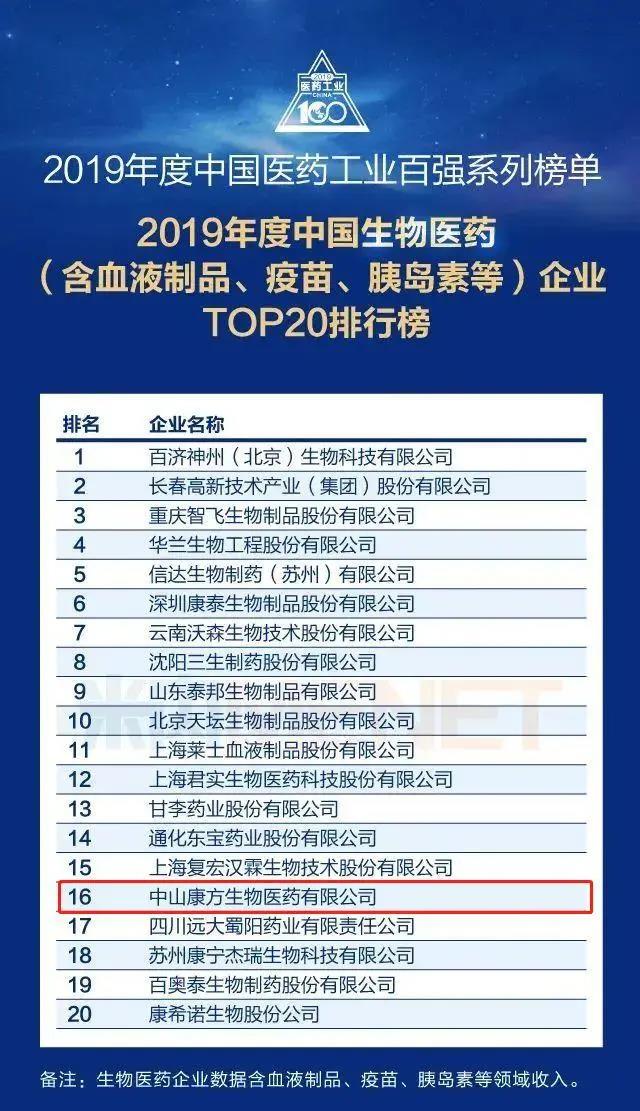 其中,國家健康基地園區(qū)企業(yè)中山康方生物醫(yī)藥有限公司位列“中國生物醫(yī)藥(含血液制品、疫苗、胰島素等)企業(yè)TOP20排行榜”第16名;中山市中智藥業(yè)集團(tuán)有限公司位列“中國中藥企業(yè)TOP100排行榜”第74名。