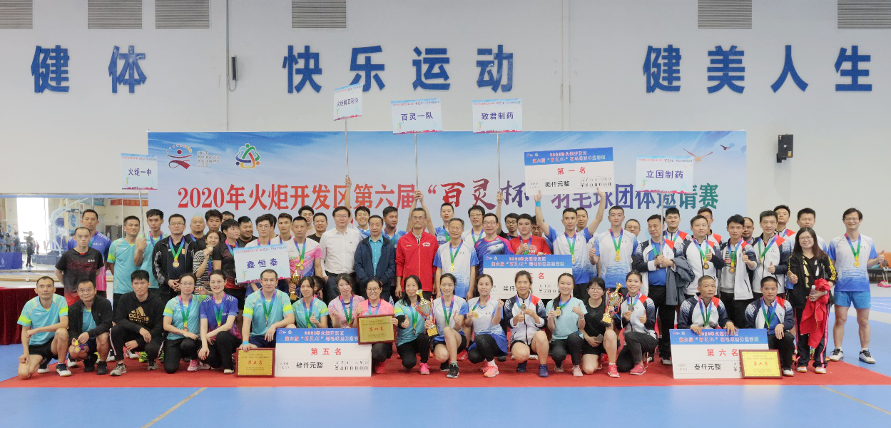 12月12-13日,“建區(qū)三十載 ‘羽’你再騰飛”——2020年火炬開發(fā)區(qū)第六屆“百靈杯”羽毛球團體邀請賽在火炬區(qū)體育中心館舉辦。本次活動由區(qū)組織人事辦、區(qū)宣傳辦(文體教育局)、區(qū)總工會、區(qū)團委指導,由區(qū)宣傳文體服務(wù)中心、健康基地集團黨委、健康基地工聯(lián)會共同主辦,中山百靈生物技術(shù)有限公司承辦。區(qū)黨工委委員林子平,區(qū)總工會主席考振柱,區(qū)組辦副主任王少凱、區(qū)宣傳文體服務(wù)中心主任李慧,健康基地集團黨委書記譚學飛、百靈生物董事長張和平出席活動。