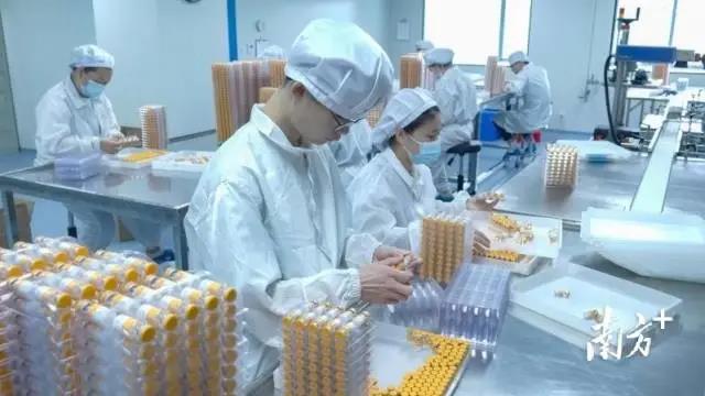 中山未名海濟(jì)生物醫(yī)藥有限公司包裝車間員工對(duì)產(chǎn)品進(jìn)行檢查包裝