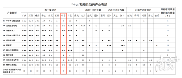 在“十大”戰(zhàn)略性支柱產(chǎn)業(yè)布局上,中山被列入全部產(chǎn)業(yè)布局范圍,是全省6個(gè)全部被列入的城市之一(分別為廣州、深圳、佛山、惠州、中山、江門)。其中,現(xiàn)代輕工紡織、生物醫(yī)藥與健康、現(xiàn)代農(nóng)業(yè)與食品3個(gè)產(chǎn)業(yè)將中山作為核心布局城市,智能家電、軟件與信息服務(wù)、超高清視頻顯示3個(gè)產(chǎn)業(yè)將中山作為重點(diǎn)布局城市。