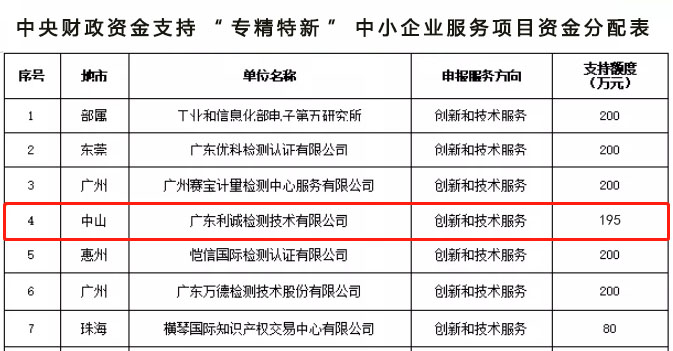 中山唯一!利誠(chéng)檢測(cè)名列2021年中央財(cái)政資金支持“專(zhuān)精特新”中小企業(yè)服務(wù)項(xiàng)目名單