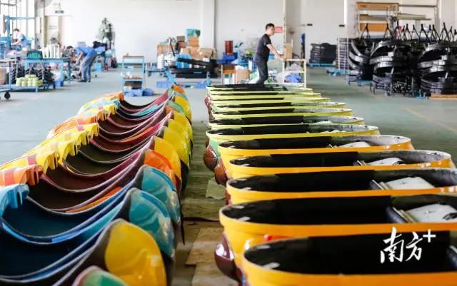 在金馬游樂港口鎮(zhèn)廠區(qū)的生產(chǎn)車間內(nèi),一些制作完成的碰碰車外殼碼放整齊,等待出庫;厮葸^去30余年,這個小小的游藝車?yán)锍休d了“金馬”的創(chuàng)業(yè)史。
