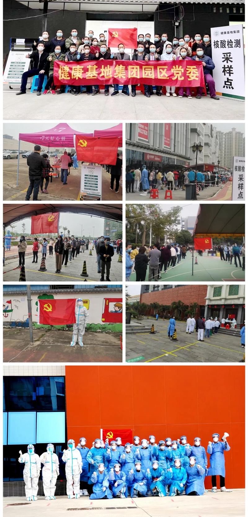 疫情就是命令,防控就是責(zé)任。健康基地集團(tuán)園區(qū)黨委按照上級指示,迅速部署,在各檢測點(diǎn)設(shè)立臨時(shí)黨支部,并把此次全員核酸檢測工作作為錘煉隊(duì)伍的“練兵場”“磨刀石”。黨員同志和廣大員工打頭陣,爭先鋒,迅速做好篩查的人員、物資、場地部署,用實(shí)際行動(dòng)詮釋“一個(gè)支部一個(gè)堡壘,一名黨員一面旗幟”的風(fēng)采,堅(jiān)決筑牢疫情防控嚴(yán)密防線,讓黨旗在疫情防控一線高高飄揚(yáng)。