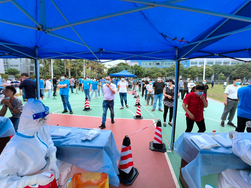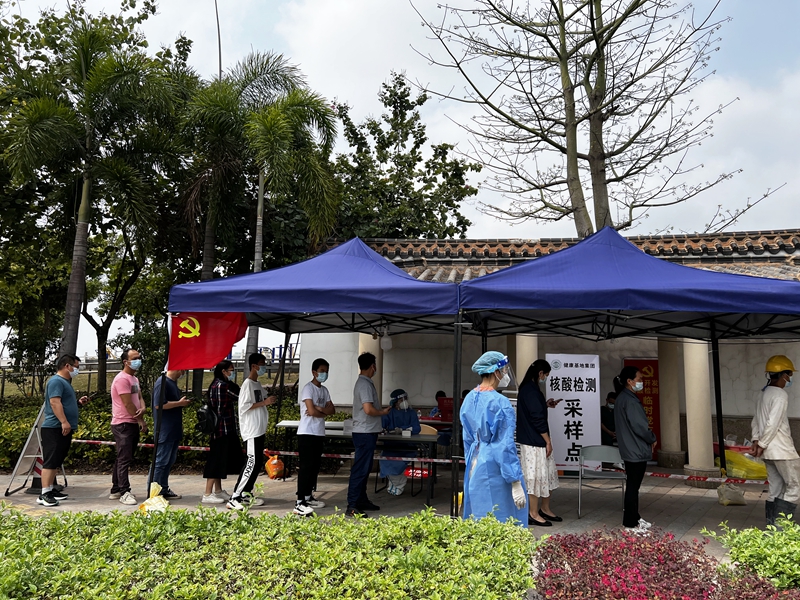 健康基地園區(qū)黨委和經(jīng)營班子帶領(lǐng)全體黨員、員工組成10支先鋒隊,奔赴健康基地園區(qū)工聯(lián)黨群服務(wù)中心、裕興工業(yè)園區(qū)、天鍵公司、武藏公司、濱江公園、標(biāo)志廣場、健康智慧小鎮(zhèn)、美味鮮公司、美捷時公司、樂心公司10個核酸檢測點,配合醫(yī)務(wù)工作者積極奮戰(zhàn)。其中有7個點在臨時交通管制區(qū),黨員不畏艱險,按照“快、嚴(yán)、實”的工作要求,保障核酸檢測工作的有條不紊。在疫情防控工作中,黨員同志們牢記初心使命,勇于擔(dān)當(dāng)作為,冒著烈日和春雨,積極投身疫情防控最前沿,全力奮戰(zhàn)在急難險重攻堅任務(wù)第一線,切實發(fā)揮了黨員先鋒模范帶頭作用。