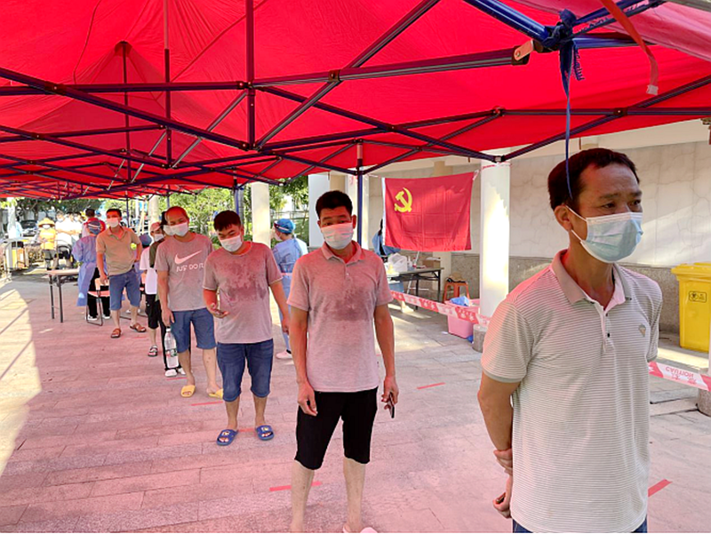 7月11、13日天剛亮,健康基地集團網(wǎng)格員和志愿者已抵達各核酸檢測點開始準備工作。黨員同志主動靠前,勇?lián)熑,不畏艱難,身體力行堅守在戰(zhàn)“疫”一線,組織志愿者駐守在各個檢測點,開展登記、掃碼、核對員工人數(shù)等工作,確保應檢盡檢,積極配合醫(yī)務工作者,按照“快、嚴、實”的工作要求,保障了全園區(qū)核酸檢測工作的有條不紊、安全高效。