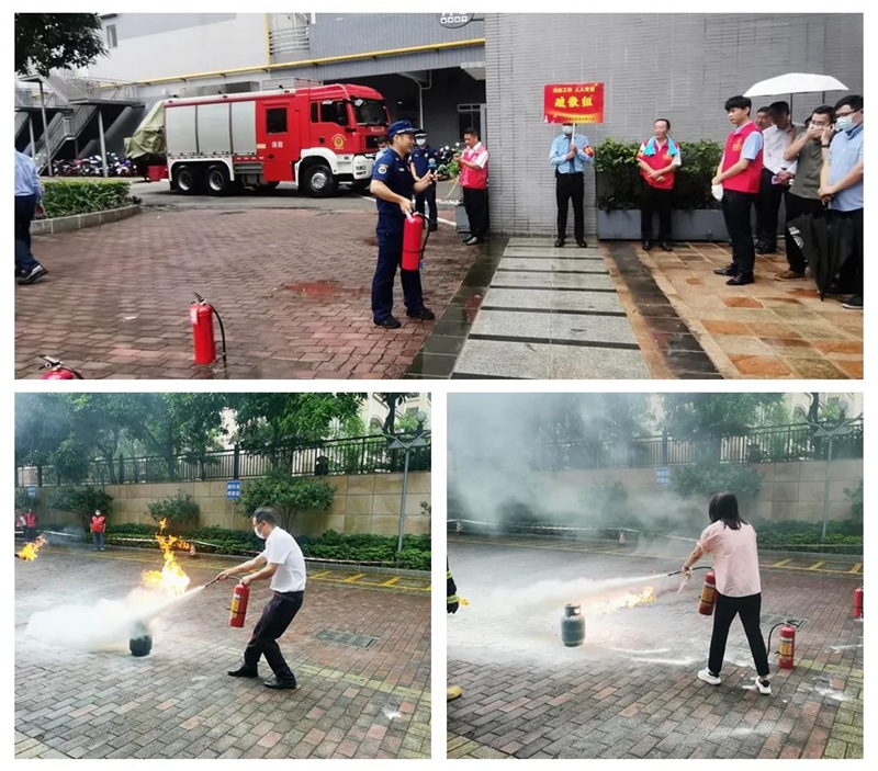 在完成疏散演練后,為進一步加強樓內員工應對突發(fā)事件的處理能力,學會如何自救和救援,火炬區(qū)消防大隊消防人員現(xiàn)場演示了滅火器的使用,員工們積極參與其中,學習積極性高漲。