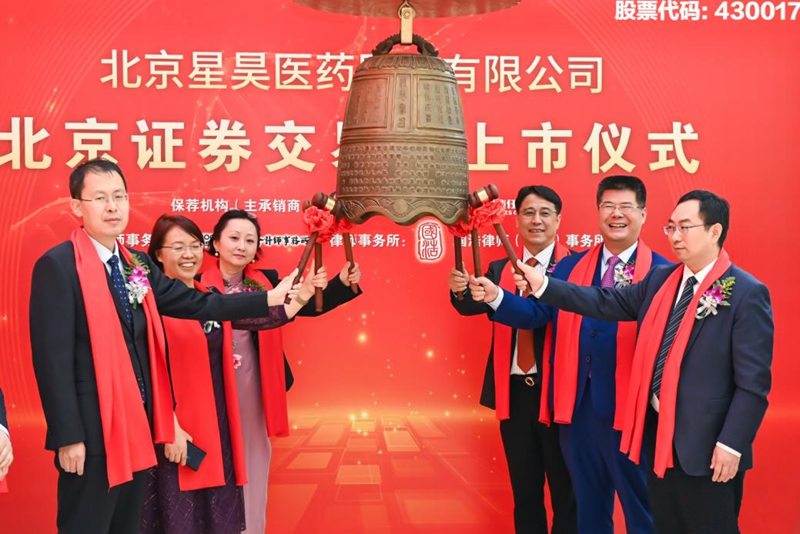 5月31日,隨著北京證券交易所開(kāi)市鐘聲的響起,北京星昊醫(yī)藥股份有限公司(股票簡(jiǎn)稱:星昊醫(yī)藥,股票代碼:430017)成功上市。該企業(yè)為健康基地園區(qū)企業(yè)廣東星昊藥業(yè)有限公司(下稱廣東星昊)控股公司。