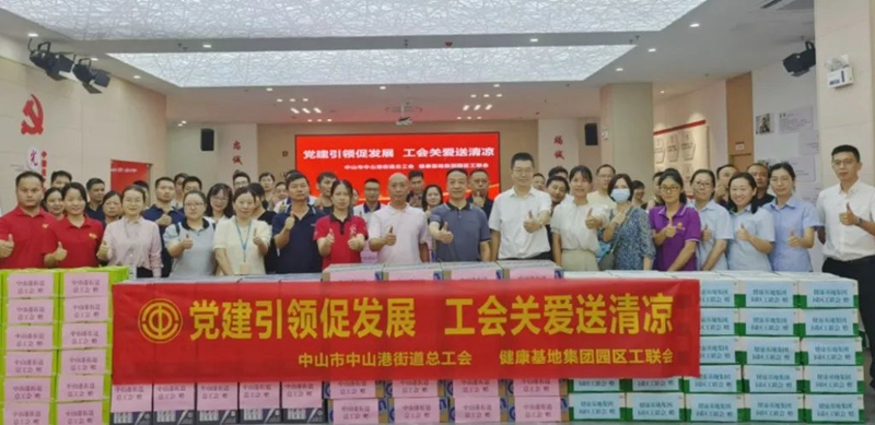 入伏以來,我市高溫天氣持續(xù),給高溫作業(yè)一線職工帶來嚴峻的“烤”驗。為深入學(xué)習貫徹黨的二十大精神及習近平總書記關(guān)于工人階級和工會工作的重要論述精神,進一步做好高溫天氣下工會勞動保護工作,切實維護廣大職工在盛夏高溫季節(jié)的安全健康權(quán)益,7月27日,中山港街道總工會走進健康基地集團園區(qū)開展“職工健康行・工會送清涼”活動,為高溫作業(yè)一線職工送去一絲清涼,解除一分暑熱,傳遞一份關(guān)愛。中山港街道總工會專職副主席考振柱、二級主任科員何健中、健康基地集團園區(qū)黨委副書記、工聯(lián)會主席吳琰光以及園區(qū)近50家企業(yè)工會代表參加活動。