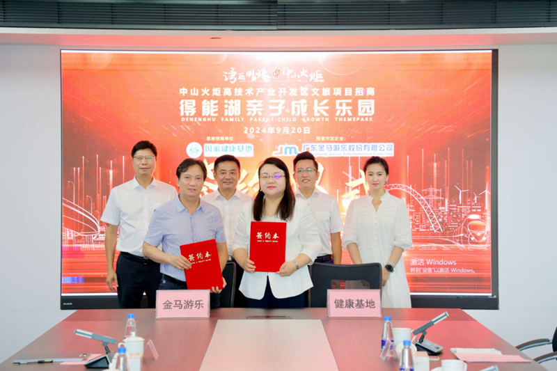 “城市會(huì)客廳+科技游樂(lè)”的創(chuàng)新型親子文旅項(xiàng)目等即將落地得能湖公園!9月20日,中山市健康基地集團(tuán)有限公司與廣東金馬游樂(lè)股份有限公司(下稱(chēng):金馬游樂(lè))簽訂“得能湖親子成長(zhǎng)樂(lè)園”文旅項(xiàng)目投資協(xié)議。中山港街道黨工委副書(shū)記胡楠,區(qū)宣傳辦(教體文旅局)主任(局長(zhǎng))李建英、副主任(副局長(zhǎng))譚海波,健康基地集團(tuán)總經(jīng)理萬(wàn)鶴群、總經(jīng)理助理涂莉,金馬游樂(lè)集團(tuán)董事長(zhǎng)鄧志毅、副總經(jīng)理李勇、副總經(jīng)理曾慶遠(yuǎn),中山市金馬文旅發(fā)展有限公司文旅開(kāi)發(fā)總監(jiān)陳弢出席了活動(dòng)。