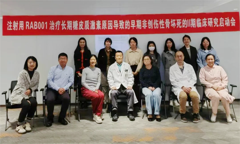 本次開展的II期試驗(yàn)為評價(jià)注射用RAB001治療長期糖皮質(zhì)激素原因?qū)е碌脑缙诜莿?chuàng)傷性骨壞死患者的有效性、安全性、耐受性及PK/PD關(guān)系的多中心、隨機(jī)、對照、盲態(tài)的Ⅱ期臨床試驗(yàn)。入組對象為長期使用糖皮質(zhì)激素導(dǎo)致的股骨頭壞死的患者,預(yù)計(jì)入組160例受試者。RAB001的Ⅱ期臨床期試驗(yàn)由上海市第六人民醫(yī)院張長青教授(國家骨科研究中心主任)和北京大學(xué)人民醫(yī)院(臨床免疫中心)粟占國教授共同牽頭,由四川大學(xué)華西醫(yī)院、北京大學(xué)第三醫(yī)院、北京積水潭醫(yī)院、中南大學(xué)湘雅二醫(yī)院、蘇州大學(xué)附屬第一醫(yī)院、廣州中醫(yī)藥大學(xué)第三附屬醫(yī)院等20多家全國知名醫(yī)院共同參與。