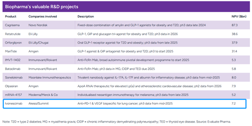 Evaluate此次榜單評選依托其嚴(yán)謹(jǐn)?shù)膬衄F(xiàn)值(NPV)模型,以對各項目的投資組合總價值進行估值。依沃西的入選不僅代表了Evaluate對其研發(fā)成果的高度認(rèn)可,更預(yù)示著其在未來全球醫(yī)藥市場中的巨大商業(yè)價值。