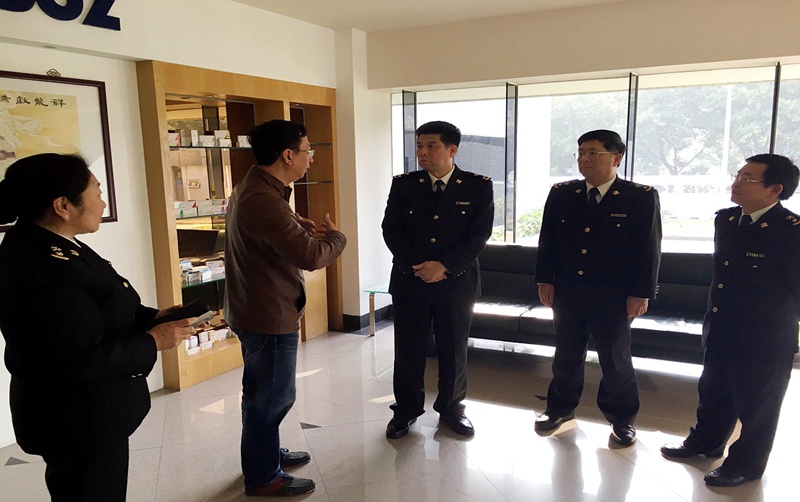 3月1日,拱北海關(guān)副關(guān)長熊振國、中山海關(guān)副關(guān)長歐小瑛一行到健康基地園區(qū)企業(yè)山德士(中國)制藥有限公司考察調(diào)研。