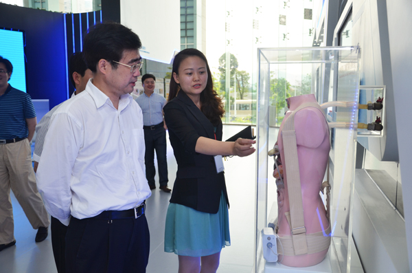 陸春云一行參觀了健康基地宣傳展廳,健康基地負責人介紹了健康基地的發(fā)展規(guī)劃、落戶企業(yè)、配套服務平臺、創(chuàng)新團隊等政策、服務、人才支撐體系,以及中山市健康醫(yī)療信息化平臺的建設成果及發(fā)展方向。陸春云表示,健康基地的發(fā)展模式兼具創(chuàng)新性和科技成長性,希望在醫(yī)藥健康領域與健康基地深化交流與合作。