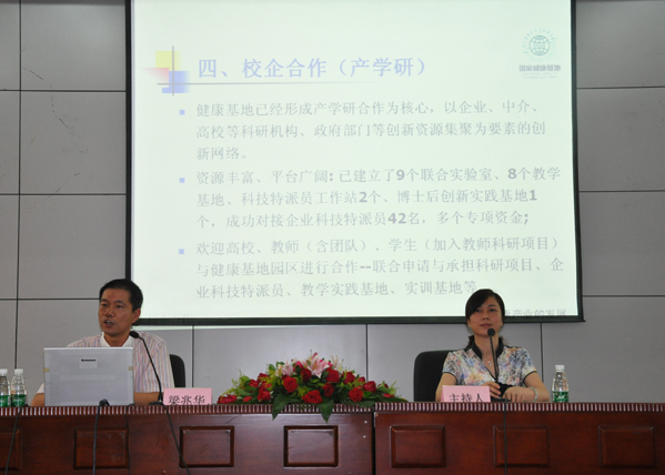 最后,梁兆華介紹了中山市近年來在產(chǎn)學研平臺建設(shè)方面所出臺的各項扶持政策和專項資金,并歡迎高校的教師和學生們與健康基地園區(qū)展開合作,積極申報與承擔科研項目、合作共建教學實踐基地等,共同推動中山市健康產(chǎn)業(yè)的產(chǎn)學研合作,為健康產(chǎn)業(yè)的發(fā)展注入更多的科技含量和高端人才。